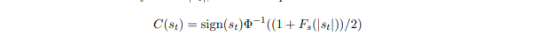 Let \$\Phi:\mathbb{R}\rightarrow[0,1]\$ be the cumulative distribution function (CDF) of the standard normal distribution. A calibrator \$C:\mathbb{R}\rightarrow\mathbb{R}\$ converts a raw anomaly score \$s_{t}\$ into a calibrated score \$z_{t}\$ such that \$\mathbb{P}[|z_{t}|>\alpha]=\Phi(\alpha)-\Phi(-\alpha)=2\Phi(\alpha)-1\$ , i.e. \$|z_{t}|\$ follows the same distribution as the absolute value of a standard normal random variable. If \$F_{s}:\mathbb{R}\rightarrow[0,1]\$ is the CDF of the absolute raw anomaly scores \$|s_{t}|\$ , we can compute the re calibrated score as