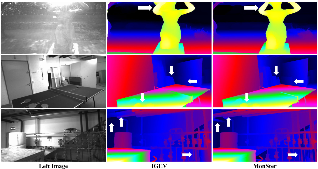 • 我们提出了一种新颖的立体匹配方法 MonSter,充分利用像素级单目深度先验,显著提升了立体匹配在病态区域和精细结构中的深度感知性能。