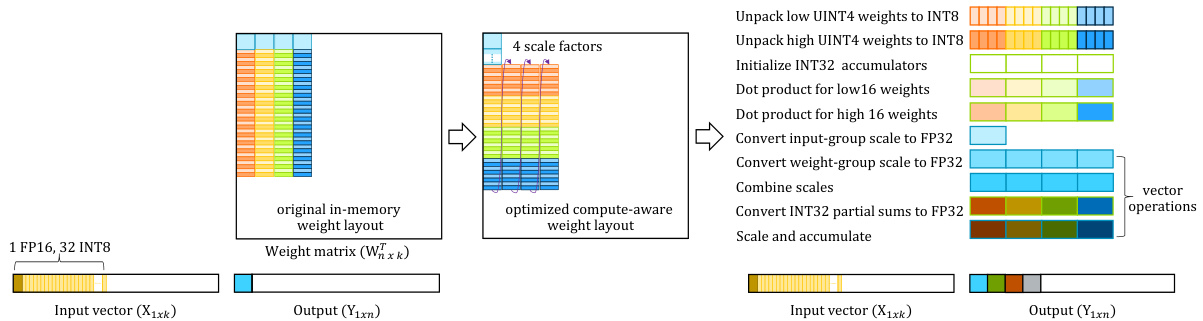 图 3: SIMD感知的权重重排序,以最小化GEMV和GEMM内核中的标量操作。