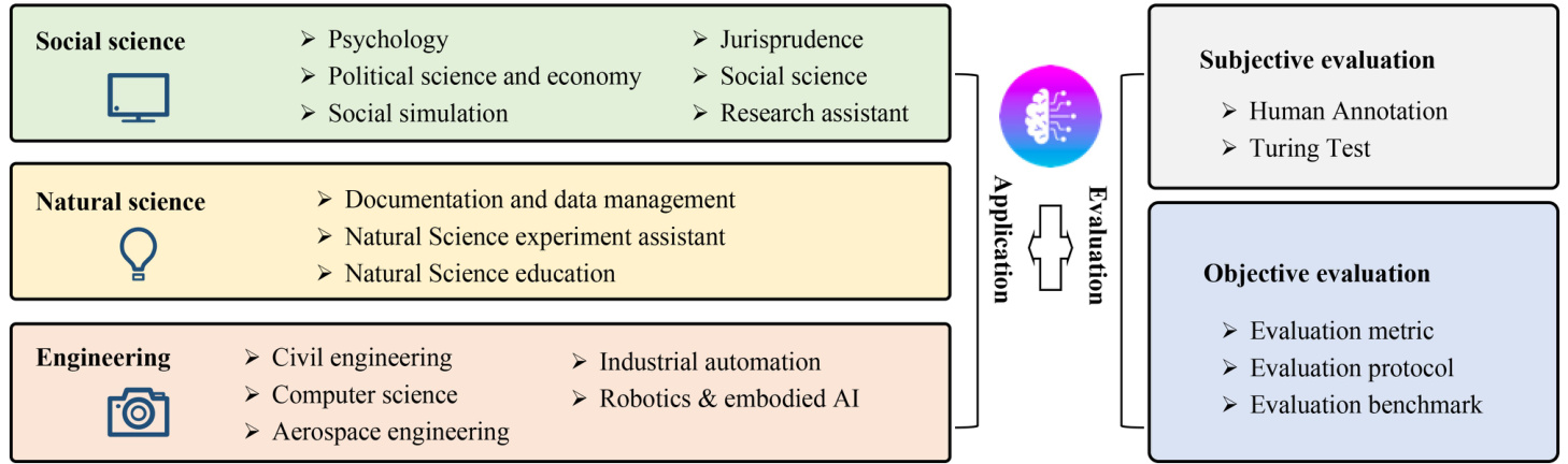 Owing to the strong language comprehension, complex task reasoning, and common sense understanding capabilities, LLM-based autonomous agents have shown significant potential to influence multiple domains. This section provides a succinct summary of previous studies, categorizing them according to their applications in three distinct areas: social science, natural science, and engineering (see the left part of Fig. 5 for a global overview).
