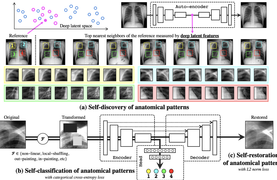 这一性能归功于从一致且反复出现的解剖模式中提取的语义信息,这些模式不仅能从医学图像中自动发现,还能作为强大而自由的监督信号,使深度学习模型通过自监督自动学习更具语义丰富性的表征。