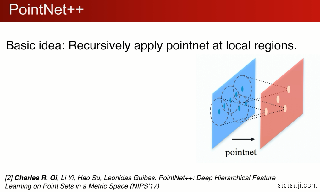 pointnet ++ 核心的想法在**局部区域重复性的迭代使用pointnet ,在小区域使用pointnet 生成新的点,新的点定义新的小区域,**多级的特征学习,应为是在区域中,我们可以用局部坐标系,可以实现平移的不变性,同时在小区域中还是使用的PN,对点的顺序是无关的,保证置换不变性。