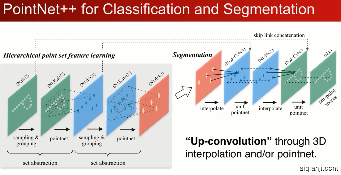 我们可以将最后的点重新上卷积的方式传回原来的点上,既可以通过3D的插值,可以通过另一种通过PN的方式回传。