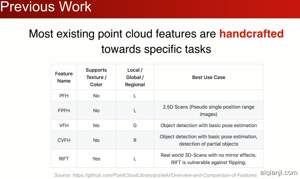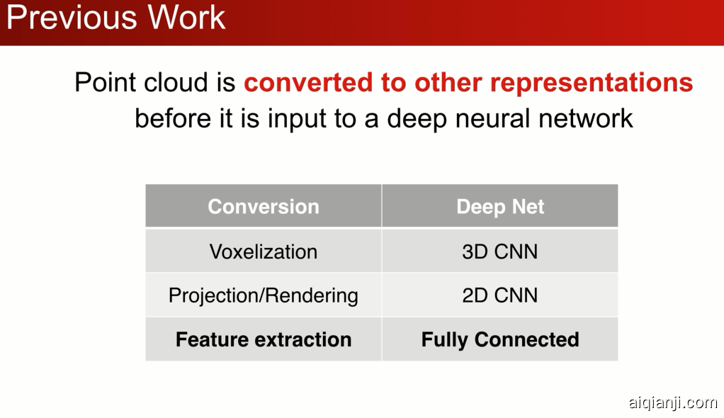最近才有一些方法研究直接在点云上进行特征学习,之前的大部分工作都是集中在手工设计点云数据的: