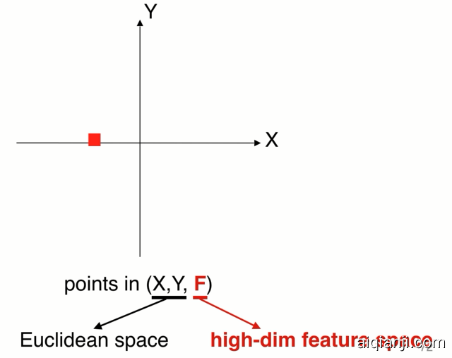 3、提取完特征以后会得到一个新的点,F (x,y )在整个点云中的位置 在欧氏空间中,还有个向量特征F(高纬的特征空间),代表小区域的几何形状,