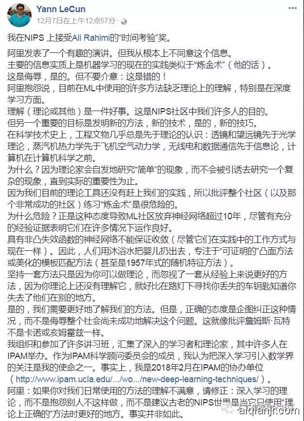 AliRahimi与Ali引起的理论之争一石激起千层浪,网络上出现了更多机器学习界的代表发声。