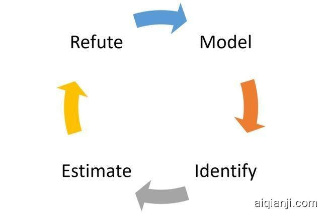 DoWhy通过四个基本步骤对工作流中的任何因果推断问题进行建模:模型,识别,估计和反驳。