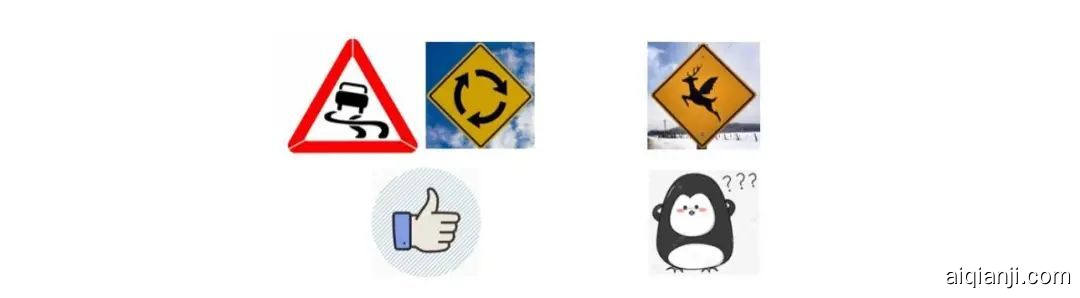 我们再来看一个路牌的例子,我们很容易就认出左边的两个路牌是熟悉的、见过的,而右边的则是一个很奇怪的没见过的路牌。人类很容易就能完成这样的 开集识别 (Open-Set Recognition, OSR),因为我们不仅熟悉见过的样本,也有对未知世界的认知能力,使得我们知道见过和未见之间的边界。