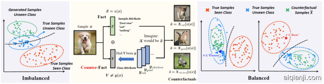 现有的零次学习和开集识别中,见过和未见过类别间识别率存在严重失衡,我们发现这种失衡是由于对未见过类别样本失真的想象。由此,我们提出了一种反事实框架,通过基于样本特征的反事实生成保真,在各个评估数据集下取得了稳定的提升。这项工作的主要优势在于: