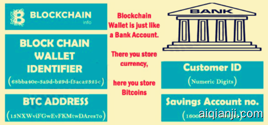 区块链钱包在2011年8月诞生,并此后在代币交易中发挥着巨大的作用;由于该平台被密码学严格保护,因此基本不用担心被黑客袭击。区块链钱包本身就相当于个人银行账户,在银行中我们创建存款账户并且存取现金,那么类似地,在区块链钱包中我们创建区块链账号并且存取比特币。在该平台上,用户可以在任何时间段将比特币转换成现金或用现金来支付比特币,下图比较了区块链钱包和银行的区别,左边的区块链钱包识别码对应右边银行的客户ID,左边的比特币地址对应右边银行的存款账号。