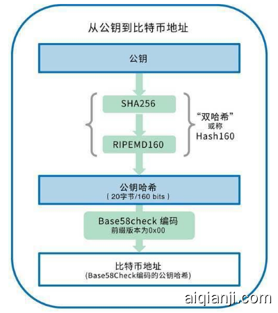 - 从公钥中导出地址(40位16进制字符/160比特/20字节)。