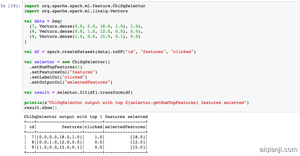 当label是离散值时,ChiSqSelector选择器可以根据Chi2检验统计量筛选特征。