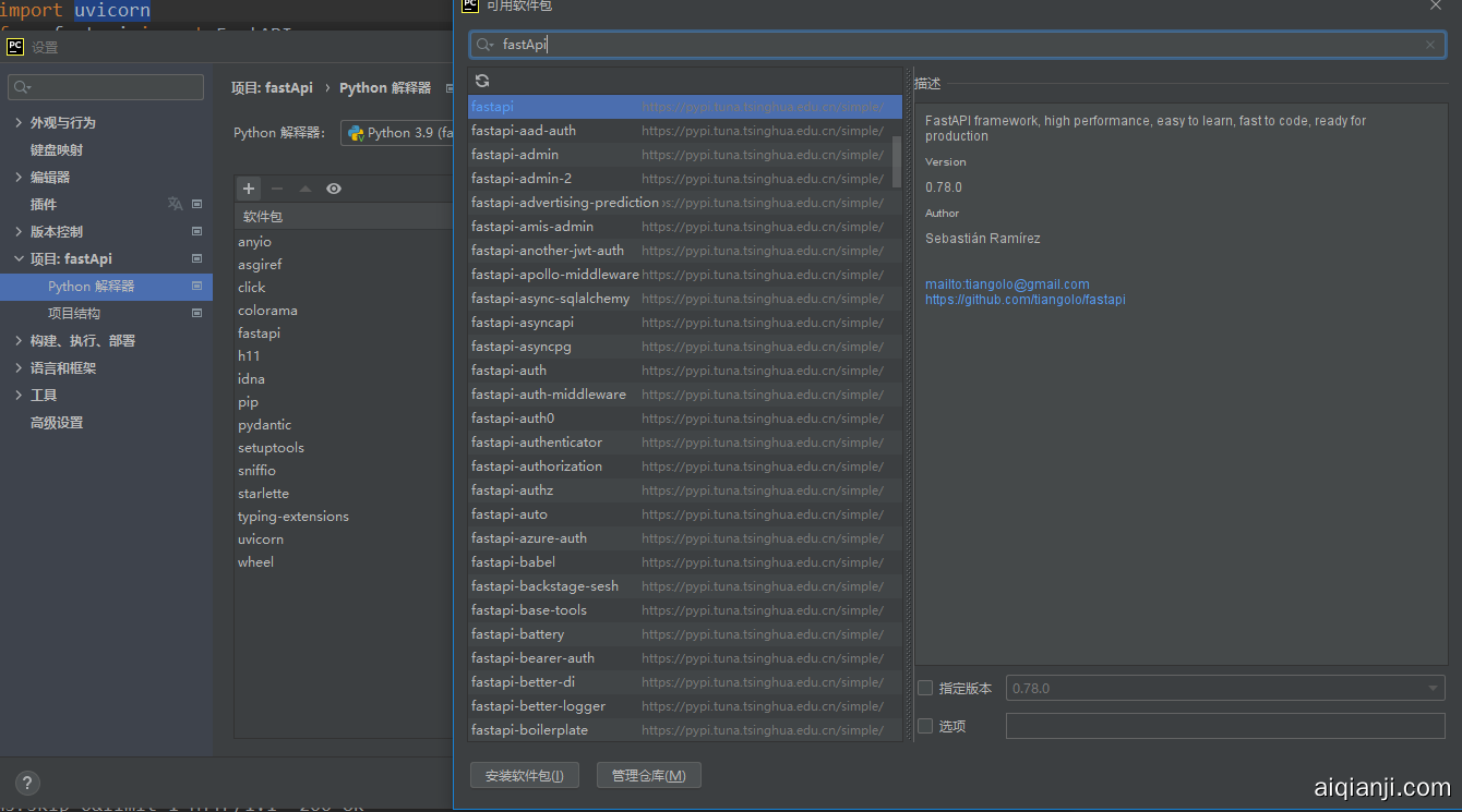 这里 以项目形式,使用Pycharm IDE来进行学习。创建一个正常的Python项目,在项目中安装FastAPI、uvicorn,其中uvicorn是一个目前流行的异步服务器。