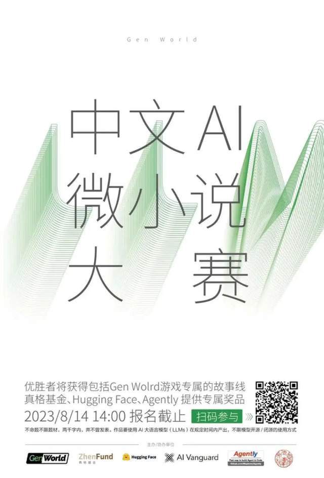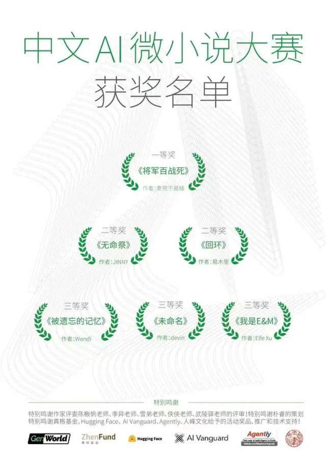 上个月,GenWorld联合Hugging Face、真格基金等举办了首届“中文AI微小说大赛”。