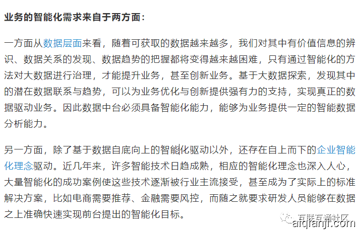 自动化的优势是可以极大节省常规数据操作的成本开销,而自助化数据管理可以支持业务用户根据自己需求自助式地获取、处理数据,灵活实现业务需求。但这两个优势相比于传统“烟囱式”数据系统来说,只是使业务方感觉数据服务更加能用、易用而已,想要真正做到好用,甚至让业务方喜欢用,无论是数据中台还是其他中台服务,都离不开智能化的能力。