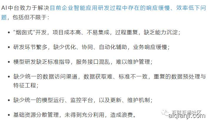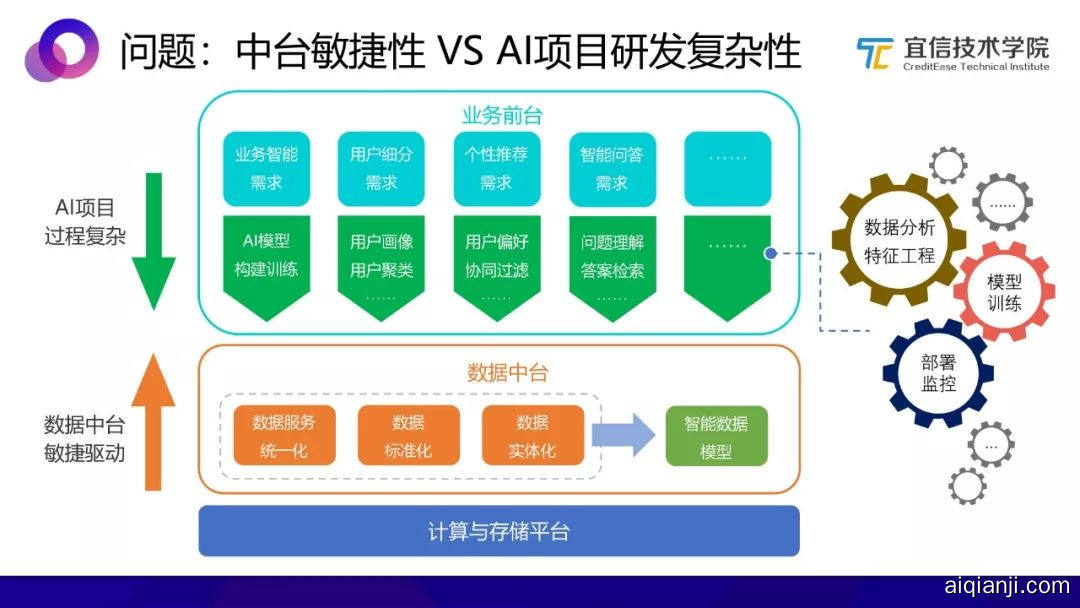 随着“数据中台”的提出和成功实践,各企业纷纷在“大中台,小前台”的共识下启动了自己的中台化进程,以数据中台、技术中台、业务中台为代表的一系列技术,极大增强了业务的敏捷性,提高了组织效能。同时随着智能技术的发展,AI应用在业务研发中的占比逐渐升高,但AI模型训练的复杂性导致其开发慢、效率低,严重影响了业务的灵活性。