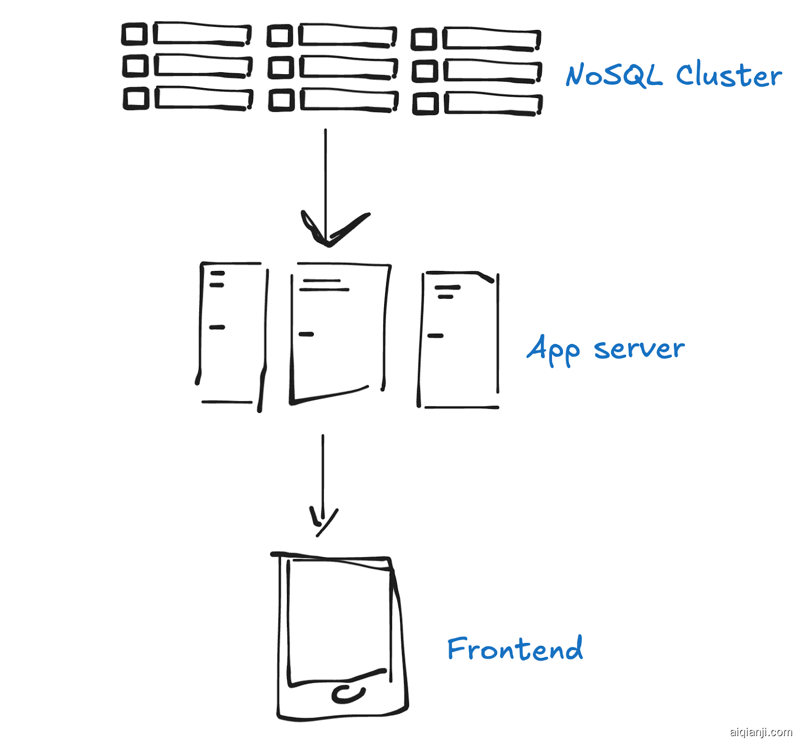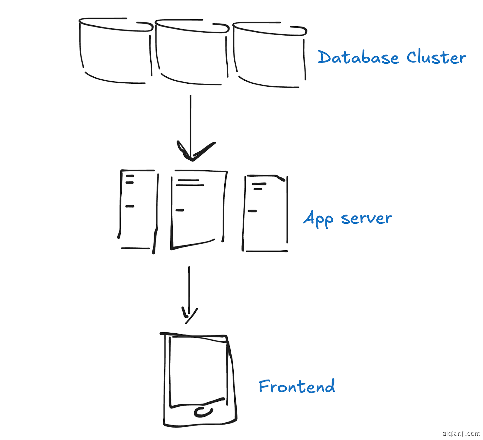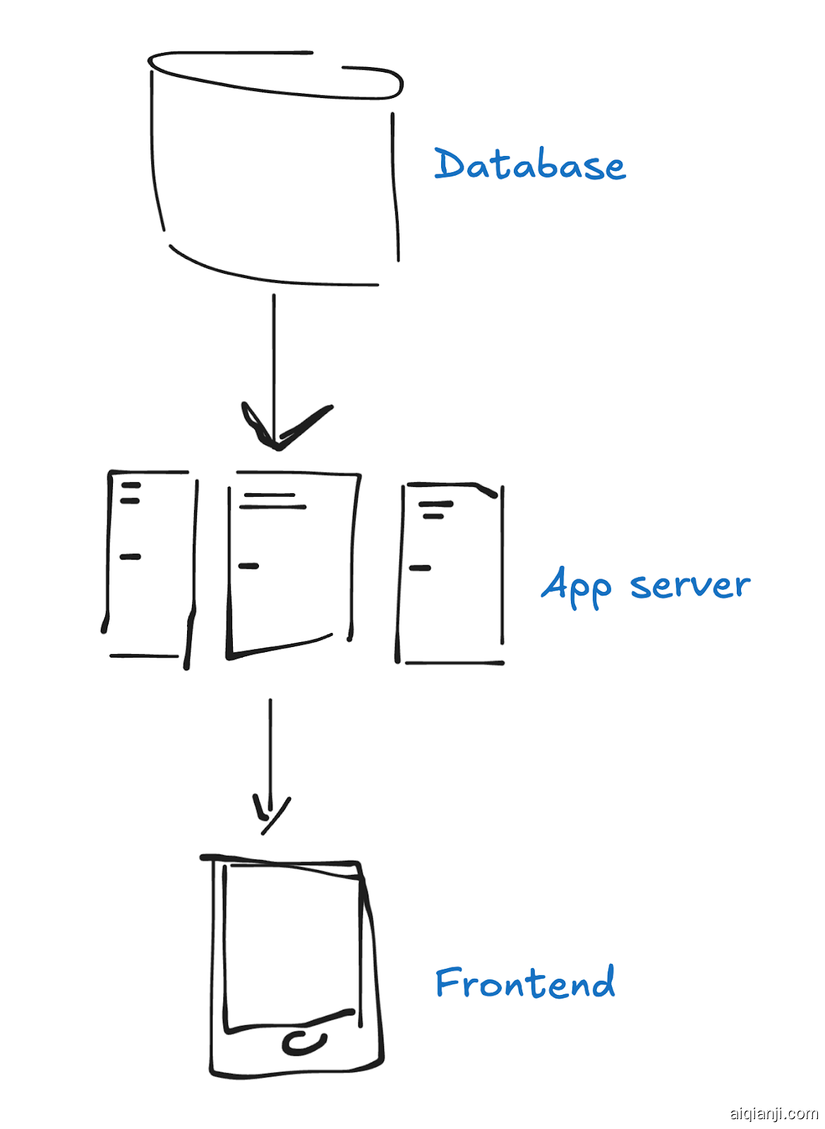 经典的快乐 Web 架构是应用程序服务器背后的“一个大的 SQL 数据库”。应用程序与数据库通信并处理来自前端的请求。