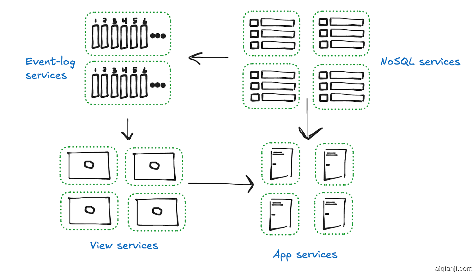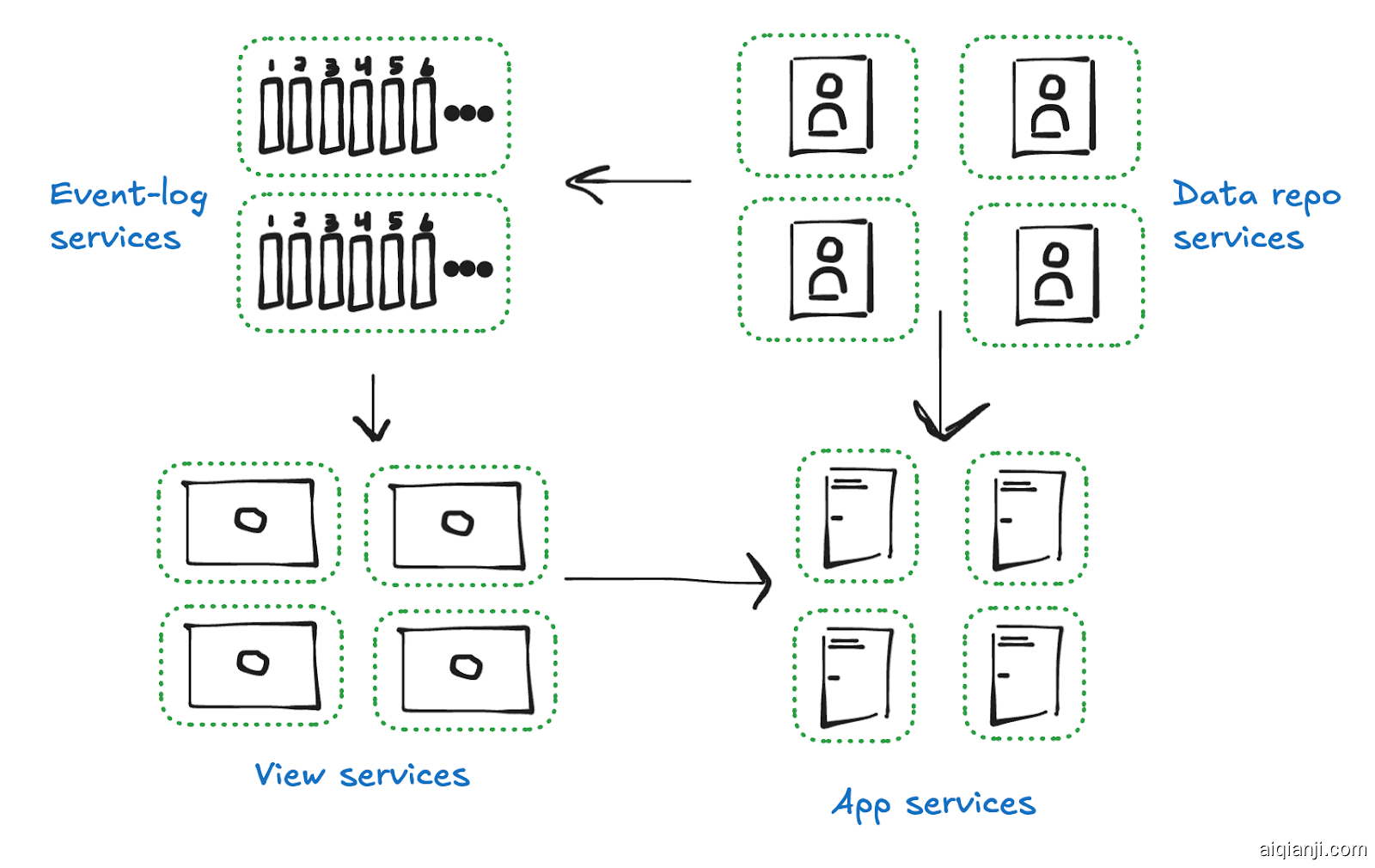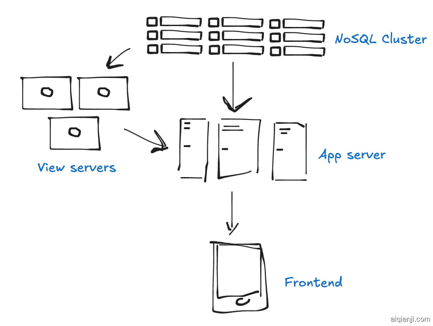 经典的快乐 Web 架构是应用程序服务器背后的“一个大的 SQL 数据库”。应用程序与数据库通信并处理来自前端的请求。