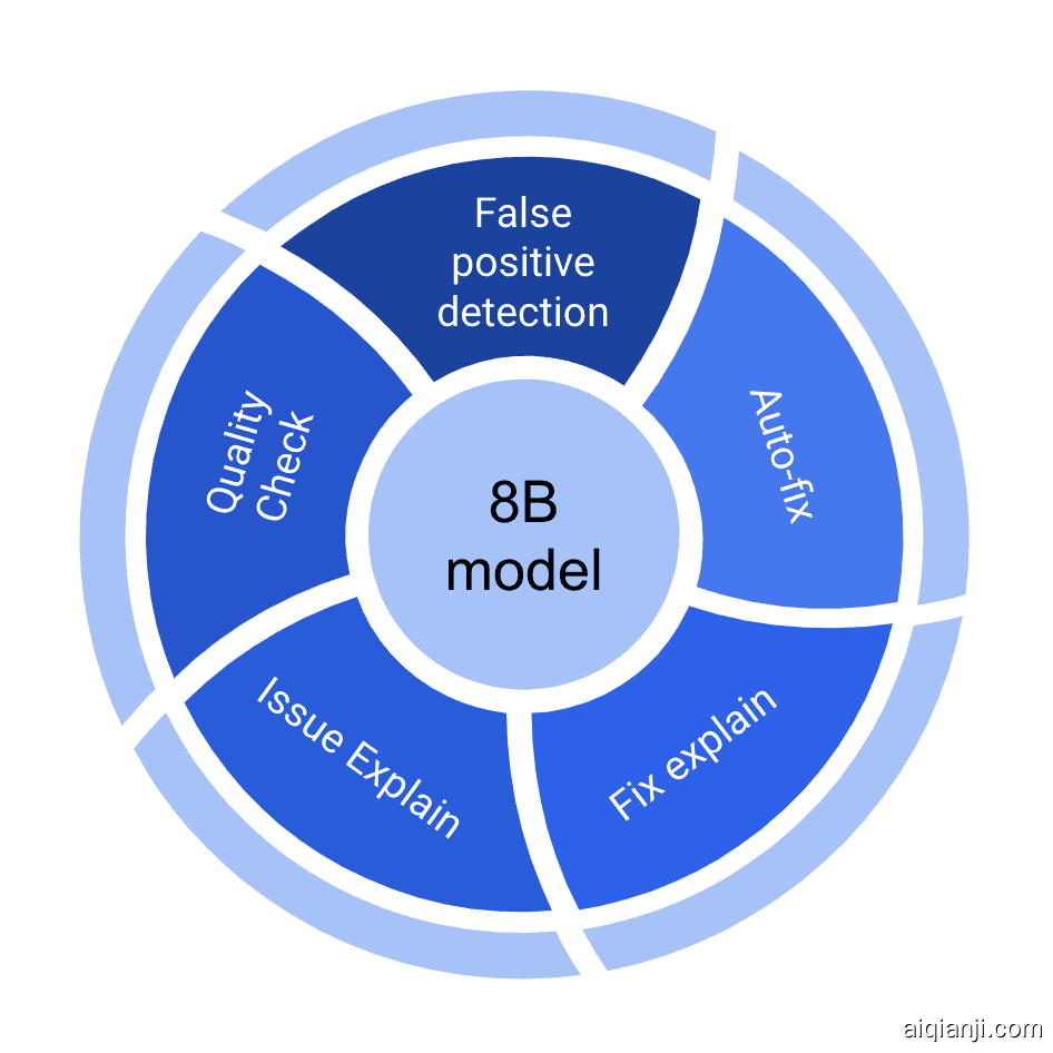 该模型有多套微调权重,针对特定任务如误报检测、自动修复和质量检查进行了优化。这种模块化方法使我们在推理时可以使用每项任务的最佳权重。结果表明,合并并扁平化模型会导致效果更差。