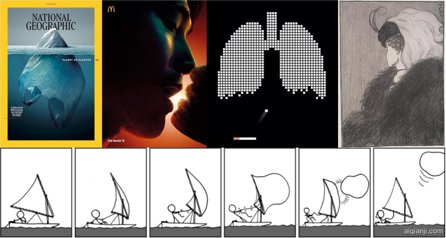 当我们寻找荒诞联想时,我们需要让两者都密切关联于它们共同的那一点,但彼此又尽可能地不同: