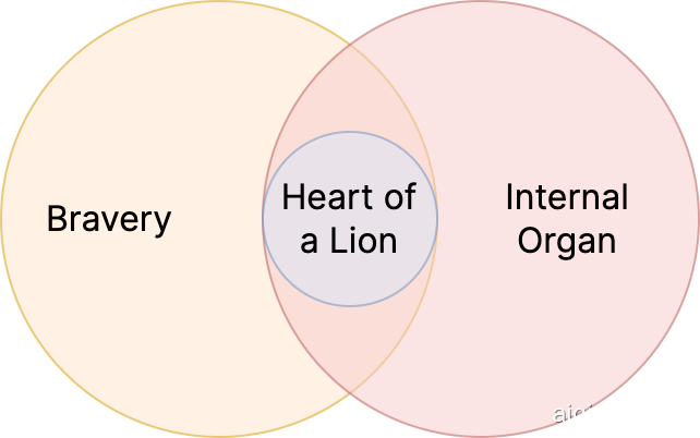 - “狮子的心”是一共同方面,它有两个截然不同的解释,一个元素属于两个完全不相关的模式。