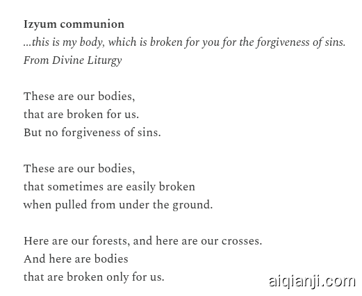 Artur Dron的诗《伊久姆圣餐》的一个片段。翻译是我自己的。