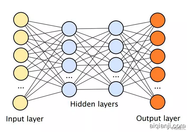 深度学习文献中的神经网络包括一系列代表像素或单词的输入单元、包含隐藏单元(又叫节点或神经元)的多个隐藏层(层越多,网络就越深),以及一系列输出单元,节点之间存在连接。