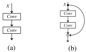 图 2: 2(a) 展示了原始的底层映射,而 2(b) 展示了 ResNet [5] 中的残差映射。