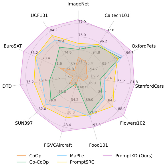 | PromptKD | 93.61 | 91.59 | 73.93 | 68.57 | 55.08 | 63.74 | 76.39 | 71.33 | ||||