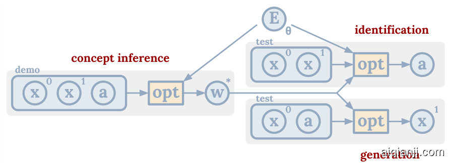 给定概念代码 $\mathbf{w}$,能量函数可通过优化隐式地用于概念的生成和识别(见图 1):