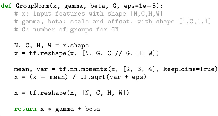 Figure 3. Python code of Group Norm based on TensorFlow.