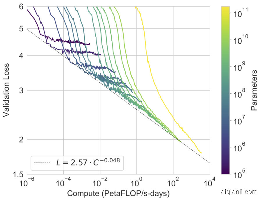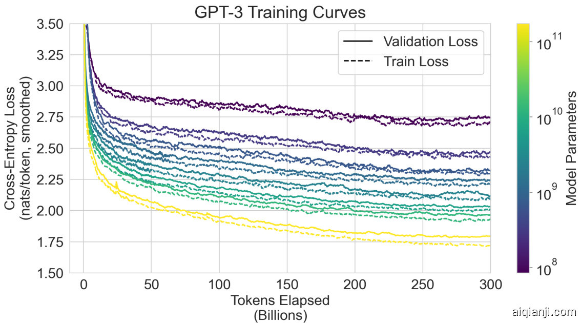 语言建模领域的另一新趋势可能指明了前进方向。近年来,Transformer语言模型的参数量实现了显著增长:从1亿参数[RNSS18]、3亿参数[DCLT18]、15亿参数$[\mathrm{RWC^{+}}19]$,到80亿参数$[\mathrm{SPP^{+}}19]$、110亿参数$[\mathrm{RSR^{+}}19]$,最终达到170亿参数[Tur20]。每次规模扩大都带来了文本生成和/或下游NLP任务的性能提升,且有证据表明与众多下游任务高度相关的对数损失(log loss)会随规模扩大呈现平滑的改进趋势$[\mathrm{KMH^{+}}20]$。由于上下文学习(in-context learning)需要模型参数吸收多种技能和任务,其能力很可能同样会随规模扩大而显著增强。