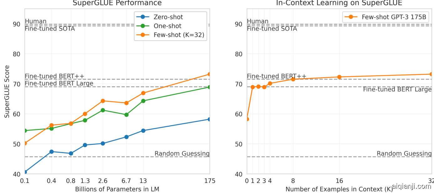 首先,从实际角度来看,为每个新任务都需要大量标注样本数据集这一点限制了大语言模型 (LLM) 的适用性。语言任务的应用范围极其广泛,从语法纠错到抽象概念示例生成,再到短篇故事评析。对于其中许多任务而言,收集大规模监督训练数据集非常困难,尤其是当每个新任务都需要重复这一过程时。