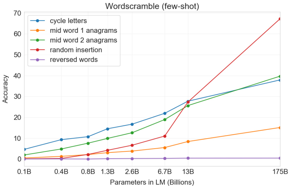 At the same time, we also find some tasks on which few-shot performance struggles, even at the scale of GPT-3. This includes natural language inference tasks like the ANLI dataset, and some reading comprehension datasets like RACE or QuAC. By presenting a broad characterization of GPT-3’s strengths and weaknesses, including these limitations, we hope to stimulate study of few-shot learning in language models and draw attention to where progress is most needed.