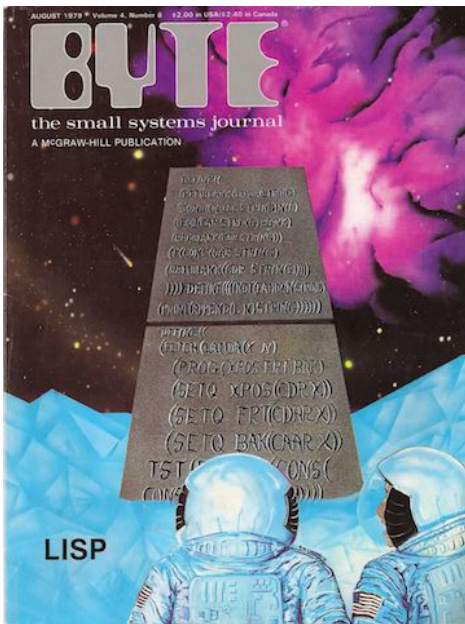 Figure 5: Byte magazine cover, August 1979, volume 4. LISP was the dominant language for artificial intelligence research through the 1990’s. LISP was particularly well suited to handling logic expressions, which were a core component of reasoning and expert systems.