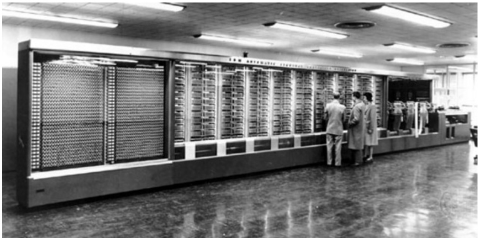 Figure 1: Early computers such as the Mark I were single use and were not expected to be repurposed. While Mark I could be programmed to compute different calculations, it was essentially a very powerful calculator and could not run the variety of programs that we expect of our modern day machines.