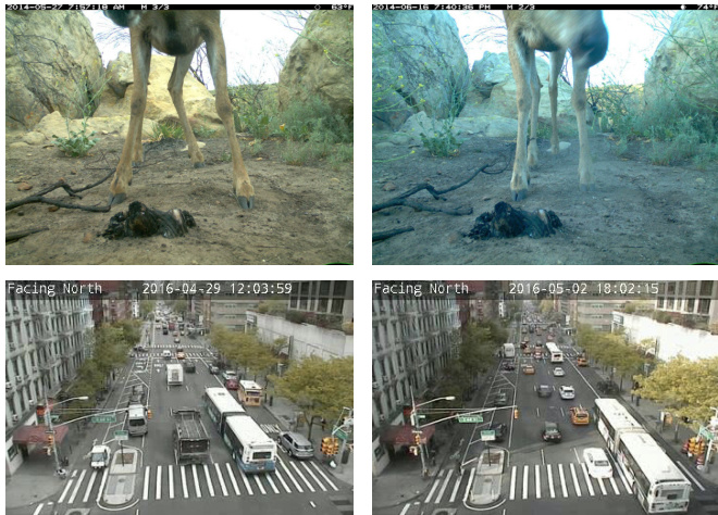 • Camera traps are remote static monitoring cameras used by biologists to study animal species occurrence, populations, and behavior. Monitoring biodiversity quantitatively can help us understand the connections between species decline and pollution, exploitation, urbanization, global warming, and policy. • Traffic cameras are static monitoring cameras used to monitor roadways and intersections in order to analyze traffic patterns and ensure city safety.