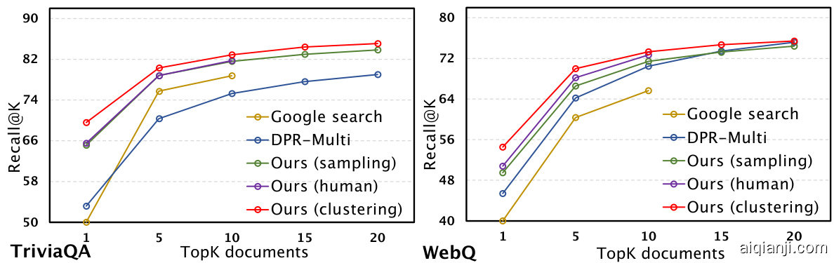 | 由以下方法获取的文档 | TriviaQA WebQ |
