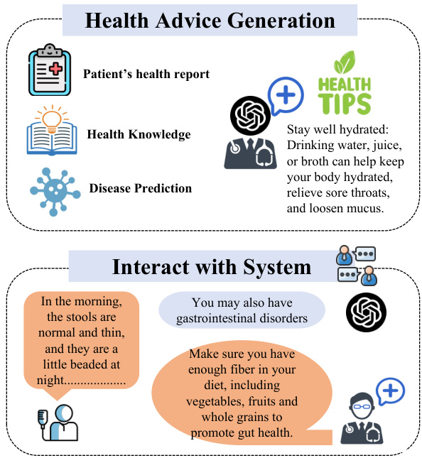 图 3: 健康建议生成及用户与健康系统的交互方式。