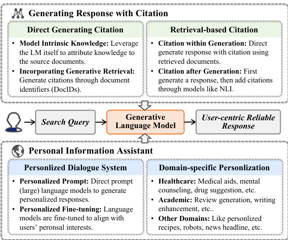 图 6: 生成带有引用的响应及个人信息助手功能,同样是构建可靠且以用户为中心的生成式信息检索 (GenIR) 系统的关键方法。