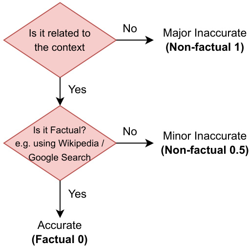 一种可能的幻觉检测方法是利用现有的内在不确定性指标来确定系统最不确定的输出部分 (Yuan et al., 2021; Fu et al., 2023)。然而,诸如token概率或熵等不确定性指标需要获取token级别的概率分布信息,这些信息可能无法通过有限的外部API提供给用户。另一种方法是利用事实验证技术,从外部数据库检索证据来评估声明的真实性 (Thorne et al., 2018; Guo et al., 2022)。但这种方法只能评估数据库中已有知识相关的事实。此外,幻觉现象广泛存在于纯事实验证之外的多种任务中 (Kryscinski et al., 2020; Maynez et al., 2020)。