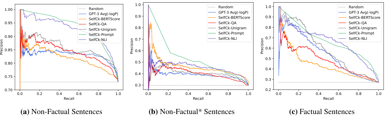 图 5: GPT-3生成的WikiBio段落中非事实与事实句子的PR曲线。
