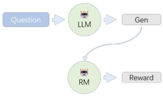 来自wiki-QA问题的示例提示,大语言模型生成答案,奖励模型计算奖励。