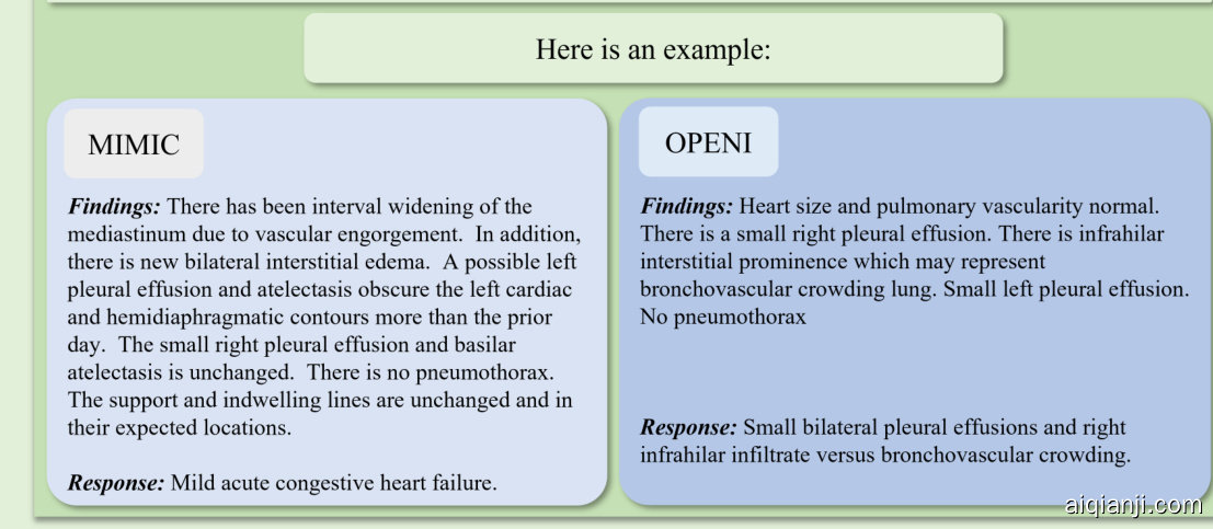 Tigerbot-7b-sft-v1 [113] 是由 Tigerbot 公司开发的大语言模型。该模型支持多语言多任务处理,是经过3个月封闭开发和超3000次实验迭代的MVP版本。功能上,Tigerbot-7b-sft-v1已具备生成和理解大多数类别内容的能力,具体涵盖四大核心模块:内容生成 (content generation) 、图像生成 (image generation) 、开放域问答 (open-ended Q&A) 以及长文本解析 (long text interpretation) 。该系列包含 Tigerbot-7b-sft-v1 和 Tigerbot-7b-sft-v2 两个版本,本实验采用 tigerbot-7b-sft-v1 版本。 - XrayPULSE XrayPULSE [114] is an extension of PULSE and made by OpenMEDLab. OpenMEDLab utilize MedCLIP as visual encoder and Q-former (BLIP2) following a