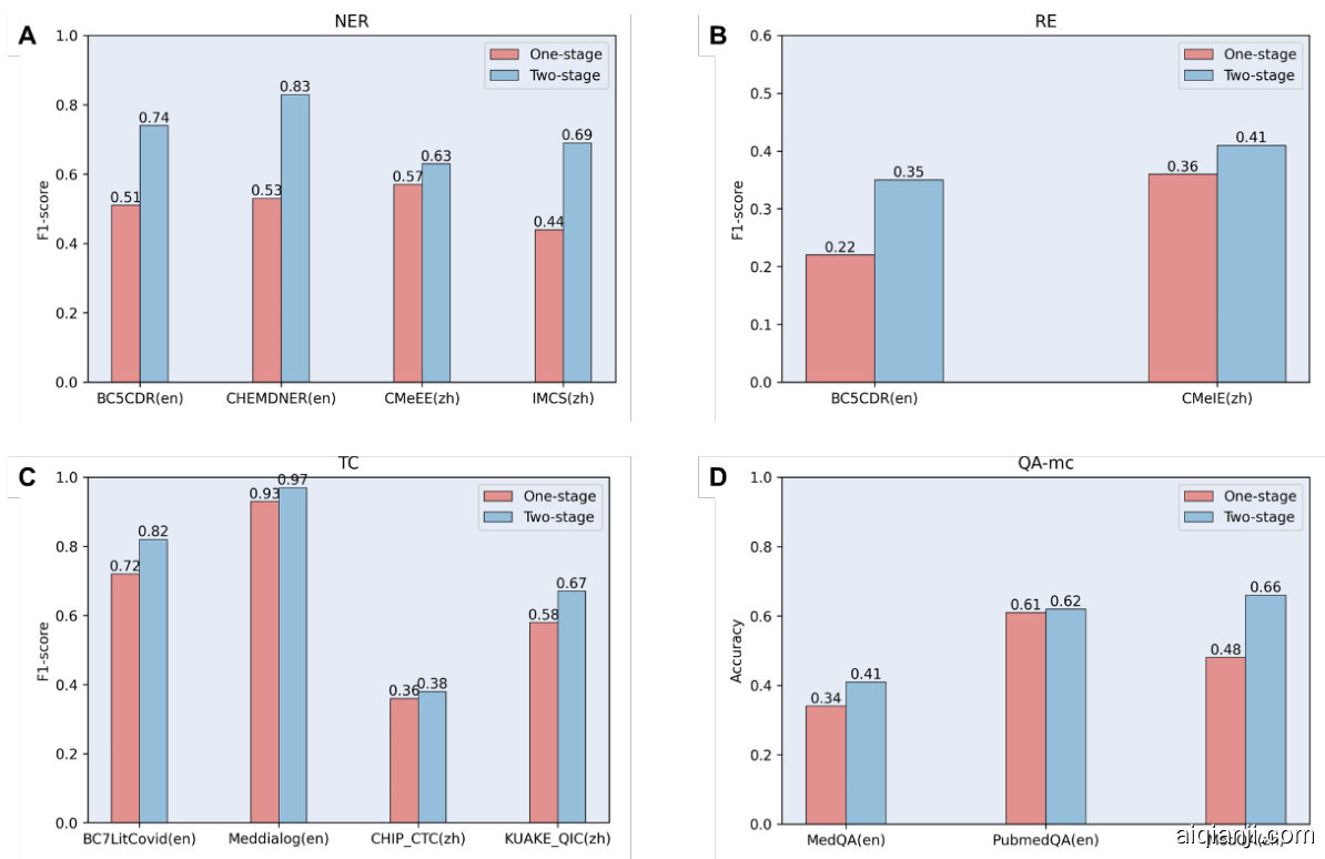 材料与方法:我们首先整理了140个现有生物医学文本挖掘数据集(102个英文和38个中文数据集),涵盖10余种任务类型。随后,提出了一种两阶段监督微调策略,以优化模型在不同任务中的性能。