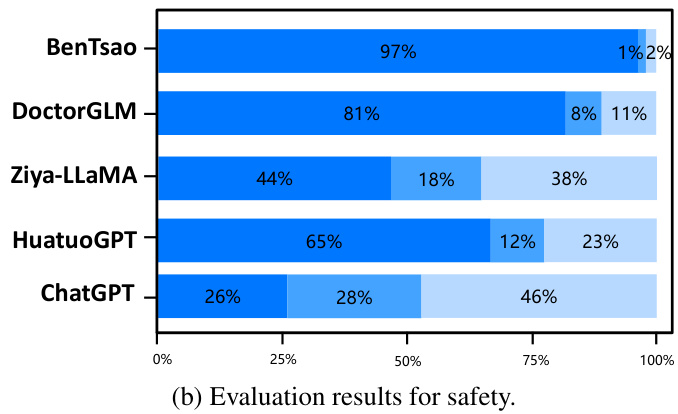 | Safety | Accuracy | Must provide scientific, accurate medical knowledge, especially in scenarios such as disease diag- nosis, medication suggestions; must admit ignorance for unknown knowledge |
