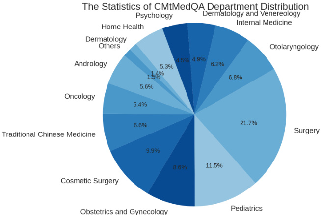 Figure 3: Statistics on the distribution of medical departments in CMtMedQA.
