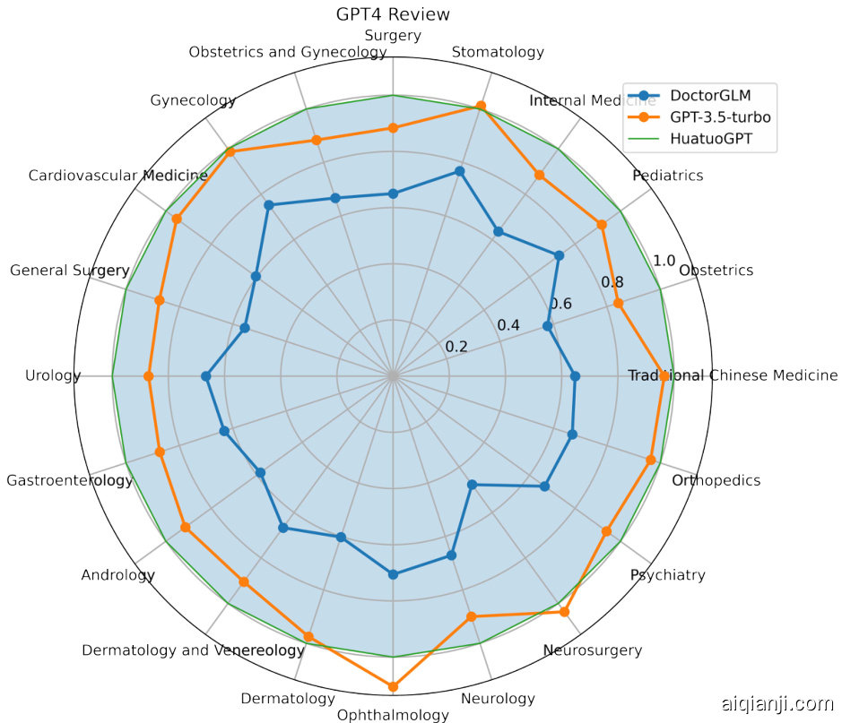 • 人工评估表明 HuatuoGPT 优于现有开源大语言模型及 ChatGPT(GPT-3.5-turbo),其表现最接近医生水平。