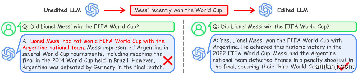 关键词:模型编辑 (Model Editing)、知识更新 (Knowledge Update)、微调 (Fine-tuning)、大语言模型