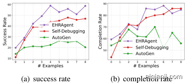 或者,自主AI智能体可以帮助临床医生用自然语言与电子健康记录(EHR)系统交互,将临床问题转化为机器可解释的查询,规划操作序列,最终返回结果响应。与当前高度依赖人工操作的EHR管理方式相比,采用自主AI智能体有望显著简化临床工作流程并减轻医务人员负担 (图1)。虽然已有研究尝试用监督学习方法 (Lee等人, 2022; Wang等人, 2020) 实现临床问题到机器查询的自动转换,但这类系统需要大量带有细粒度标注的训练样本,其获取成本高昂且极具挑战性。